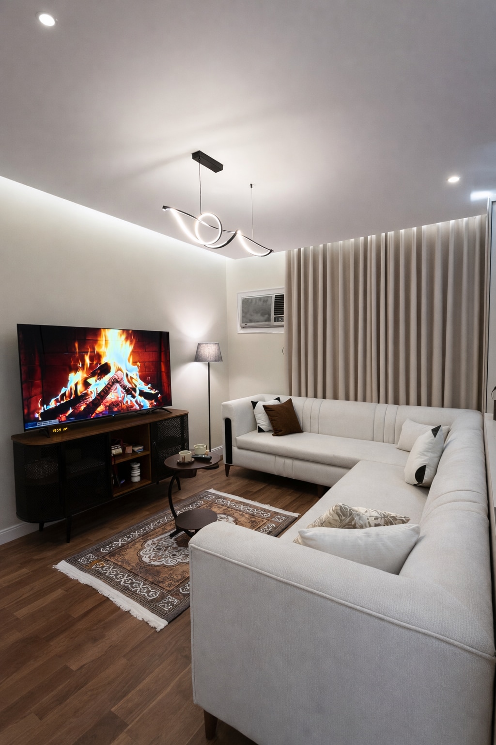 مرفق سياحي هادي ومنعزل وسكن خاص وصول ودخول ذاتي Netflix بث مباشر لقنوات العالم YouTube إنترنت مفتوح شاشة 75 بوصة مكينة قهوة سوداء مع المطحنة والبن ثلاجة صغيرة
