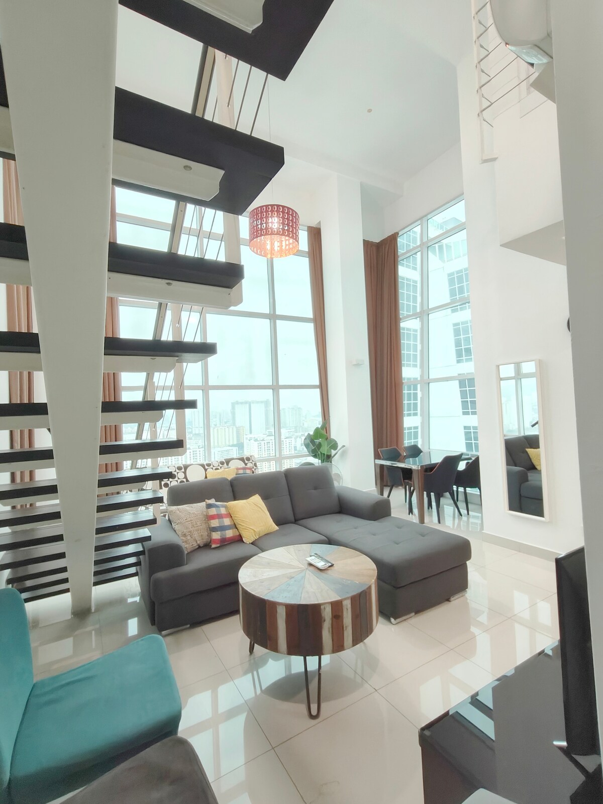 Maritime Suites by Comfy Penang • Unblocked direct full ocean view • Sunrise view from the house • Penang Bridge view from the house • 5 stars SUPERHOST services • Next to seaside • 1200 square feet duplex • 2 private car parks • 300 Mbps WiFi • 30 restaurants, cafes, pubs, Starbucks, Coffee Bean, Subway, 7-Eleven, FamilyMart are at level 2 of our house • 5 to 8 minutes drive to Chew Jetty, Komtar & UNESCO Heritage old town.