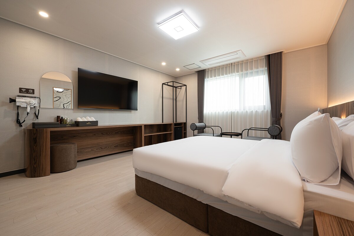 The Avenue Hotel strebt die beste Sauberkeit in Jeonju an. Das Avenue Hotel befindet sich „10 Minuten mit dem Auto vom Jeonju Hanok Village“ und „5 Minuten mit dem Taxi vom Bahnhof Jeonju“ entfernt. Sie kann als „Basis für Jeonju-Tourismus“ bezeichnet werden. Das Foto, das du siehst, ist das „Deluxe-Zimmer“. Für andere Zimmer nutzen Sie bitte „andere Unterkunft auf dem Gastgeber“:)