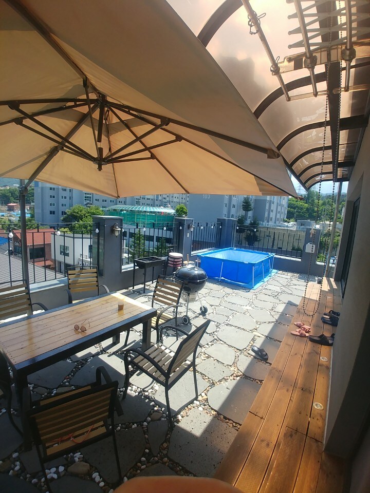 Diese ruhige Pension liegt am Fluss Jucheon. Wir laden Sie ein, mit uns einen erholsamen Familienurlaub zu verbringen. Du kannst Süßwasserfischen im Jucheon River direkt vor dir angeln. Es ist auch möglich, alle Banden mit Kindern zu fangen. Das Hinterkorn ist mit deinen Füßen auch mitten im Sommer kühl. Lege den Campingstuhl auf das Wasser und entspanne dich im Buchbereich, während du im kühlen Wasser schläfst ~ Wenn du auf die Sonne gehst, kannst du sie nach einem leckeren Grill in einem geräumigen Hinterhof verbrennen ~ Im Sommer steht der Swimmingpool zur Verfügung