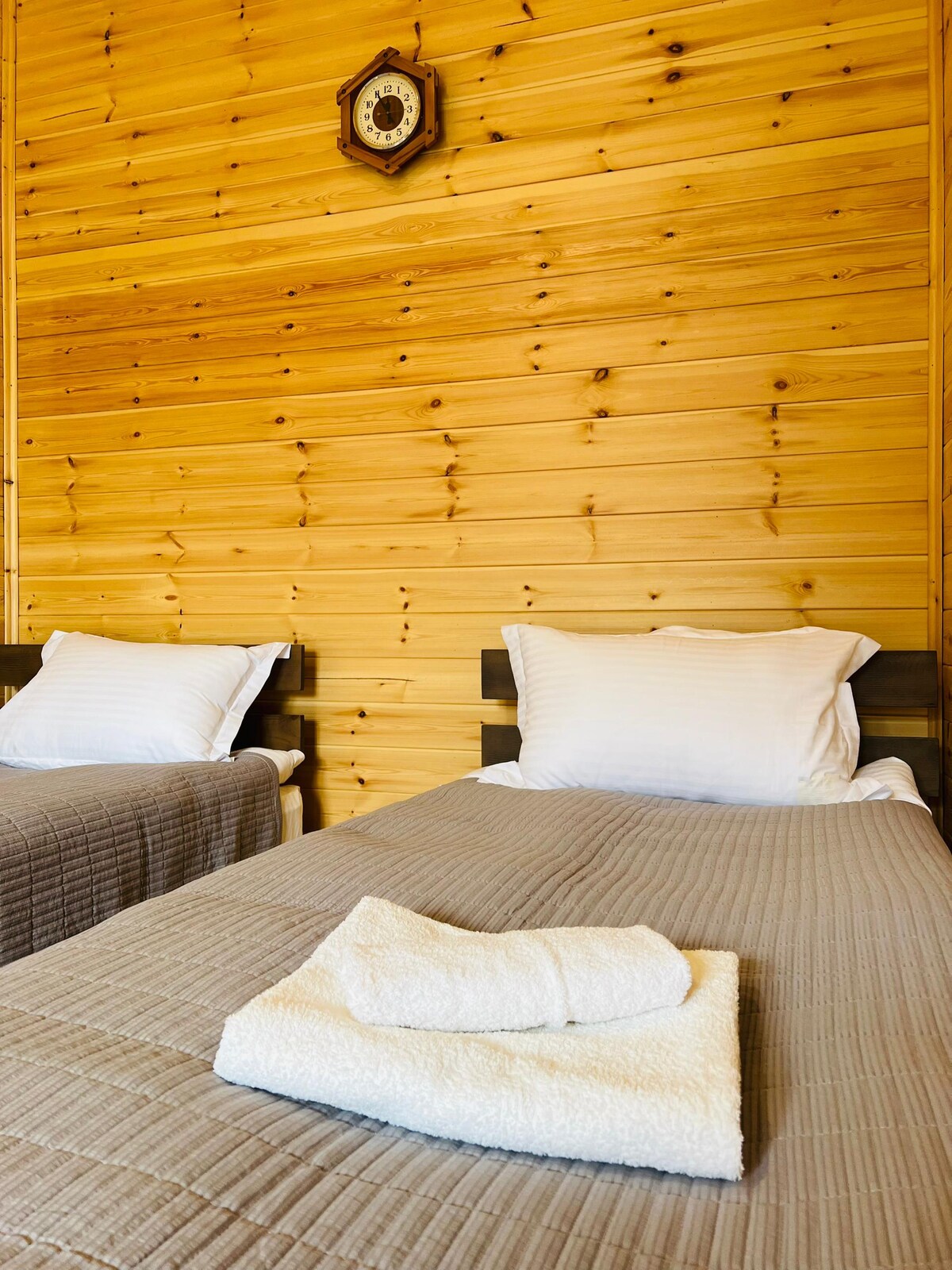 Cottages Ein Rahmen, einschließlich: Pavillon mit Tisch und Bänken, Licht überall, saubere Bettwäsche, Matratzenkissendecke, Grill, Waschbecken, Ziegelofen, Duschen und saubere Toilette. Es gibt ein geräumiges Café auf dem Gebiet (Frühstück, Mittagessen, Abendessen - lecker wie zu Hause) und vor allem eine schöne Landschaft!