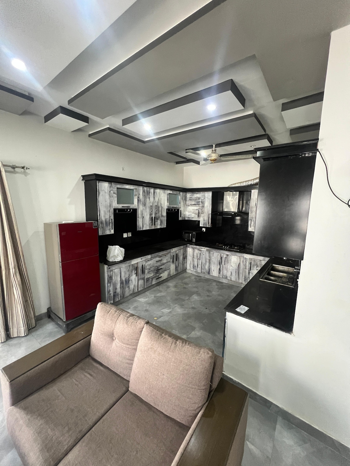 Enjoy a luxurious stay in the heart of Citi Housing Jhelum. This modern 1BR apartment features a king bed, stylish living room, LCD TV, sofa, and a beautiful balcony. The kitchen comes equipped with a fridge and microwave for a comfortable stay. Perfect for couples, solo guests, or business travelers looking for comfort, privacy, and a premium experience.