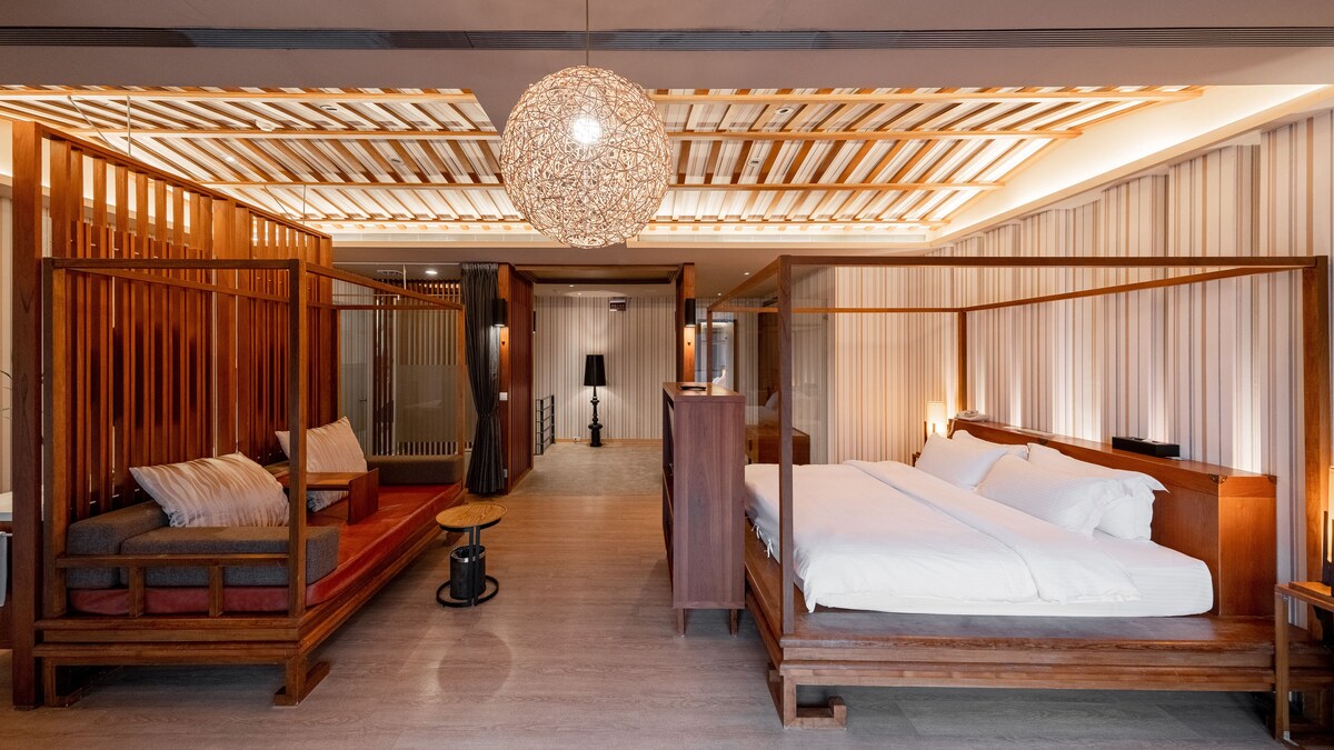 Yilan Jiaoxi Hot Spring, ein Schlafzimmer und ein Flur, ein Privathaus für vier Personen.