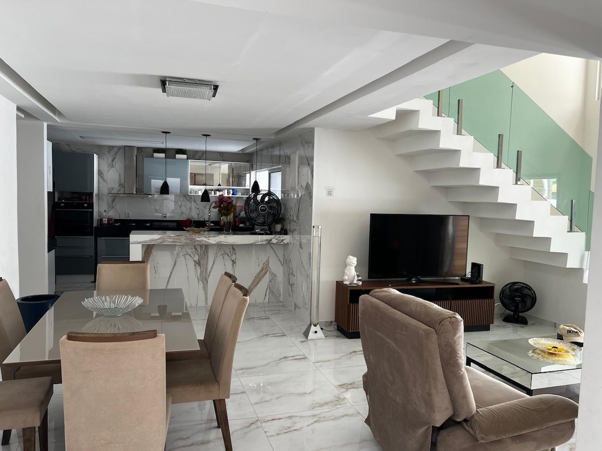Nehmen Sie die ganze Familie mit an diesen Ort, um sich auszuruhen. Platz für bis zu 8 Personen, einschließlich Kinder ab 2 Jahren. Es gibt 4 Suiten, ein Master, mit 2 überdachten Parkplätzen, im Viertel Portal do Sol, neben Altiplano Cabo Branco und weniger als 5 Minuten vom Strand Cabo Branco entfernt. Es ist möglich, bis zu 2 zusätzliche Gäste, insgesamt 10 Personen, nach vorheriger Absprache gegen einen Aufpreis von 50,00 R$/Nacht pro Person unterzubringen. Keine Tiere und die Abhaltung von Veranstaltungen