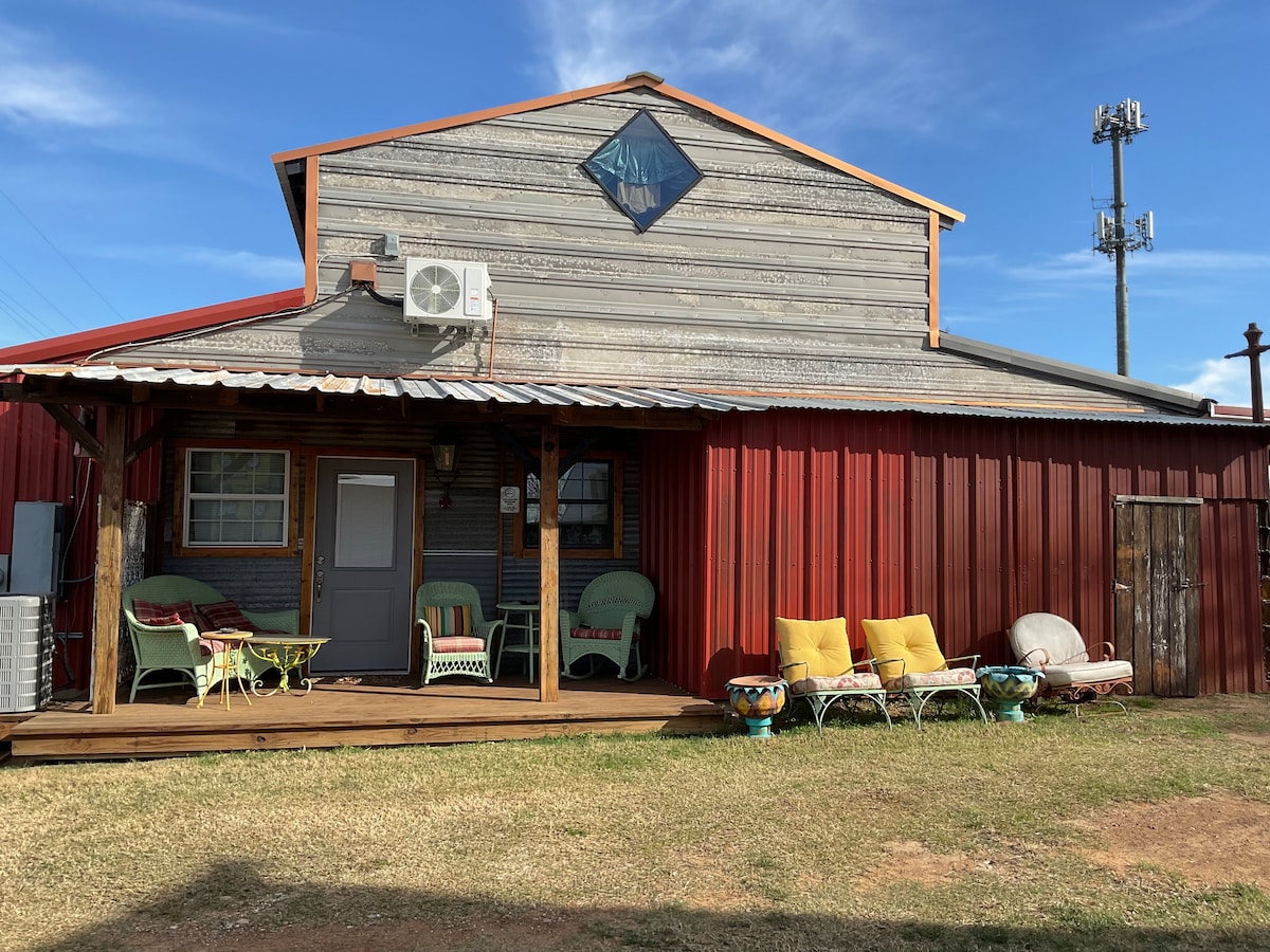 Die ganze Gruppe wird sich in dieser geräumigen und einzigartigen Unterkunft wohlfühlen. Es bietet alles, um deinen Aufenthalt angenehm zu machen, dein ganz eigener Parkplatz unter dem Dach. Private hintere Veranda mit Pferden im Blick. Jedes Brett an den Wänden, jede Fliese auf dem Boden, alle einzigartigen Details wurden liebevoll von Hand gemacht. Wir freuen uns, unsere Unterkunft mit dir teilen zu können. Wir sind auf dem Land nur eine halbe Meile vom verlorenen Eichenweingut und 2 Meilen von der gesamten Aktion der Wilshire St. Halbert Farm auf der einen Seite und einer Schaffarm auf der anderen Seite entfernt.