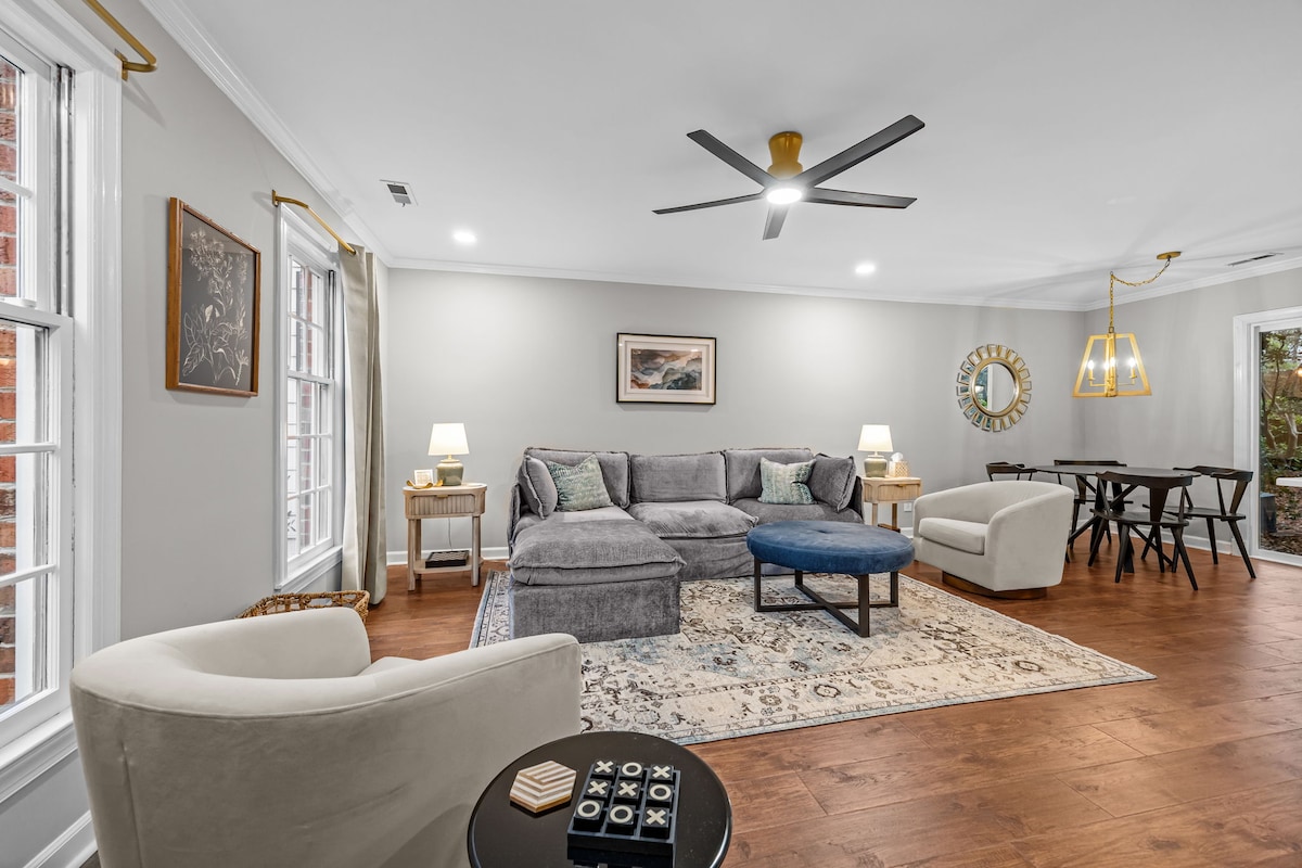 Willkommen in deinem gemütlichen urbanen Kurzurlaub! Dieses stilvolle 2BR/2BA Stadthaus ist nur 5 Minuten vom Herzen der Innenstadt von Raleigh entfernt und bietet die perfekte Mischung aus Stadtkomfort und ruhigem Komfort. Egal, ob du für einen Wochenendausflug oder einen längeren Aufenthalt hier bist, du wirst moderne Annehmlichkeiten, geräumige Schlafzimmer mit Queensize-Betten und einen gemütlichen Wohnbereich genießen, der sich perfekt zum Entspannen nach einem Tag voller Erkundungen eignet. Ideal für Alleinreisende, Paare oder Geschäftsaufenthalte - erlebe Raleigh von seiner besten Seite!