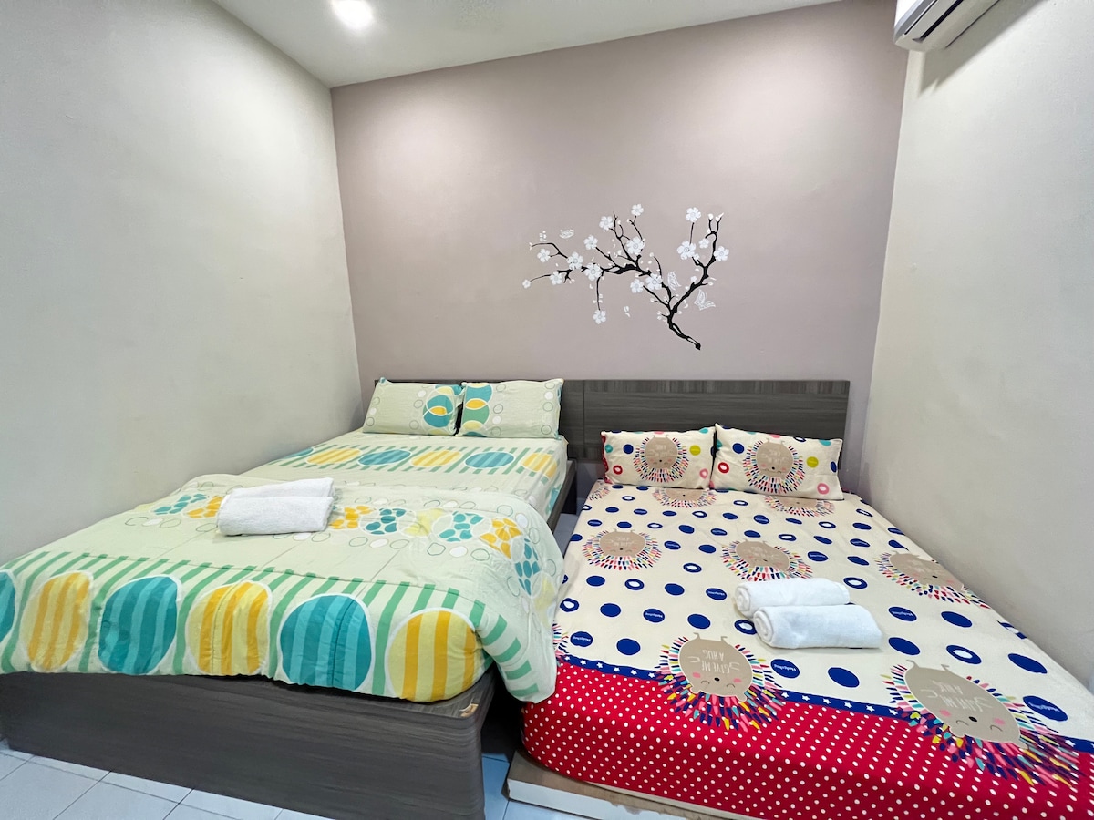 亲爱的,你好! 欢迎来到12号民宿! 这里为您提供6间房6张双人床,5-10张单人地铺床,8间厕所浴室 楼下有24小时自助洗衣店可以洗衣、烘干衣服。隔壁麻麻档吃东西很方便。可以享用到马来西亚最道地的食物。 特别说一下,这里附近有一间经验快40年的华人咖啡店「順興發餐室Soon Heng Huat Cafe」特别推荐~就在no. 123, Jalan Cendana 1, Taman Rinting.是家乡老味道,云吞面、面粉粿、咖喱面、清汤面等等,经济实惠适合大家庭的早午餐好去处。 附近有Mydin, Lotus, Today's Market,也有Mc D/ KFC/ Pizza Hut/Burger King/Kuu Van Cha/ Marry Brown/ Family Mart买东西吃东西很方便哦! 民宿前面十字路口就是油站方便添油,7-11、99speedmart便利店也在附近。 注意!不能带走民宿里面任何物品,如有不见会另行通知付费。 希望您与家人朋友可以在这里渡过温馨的时光。 民宿主人Irene Goh敬上