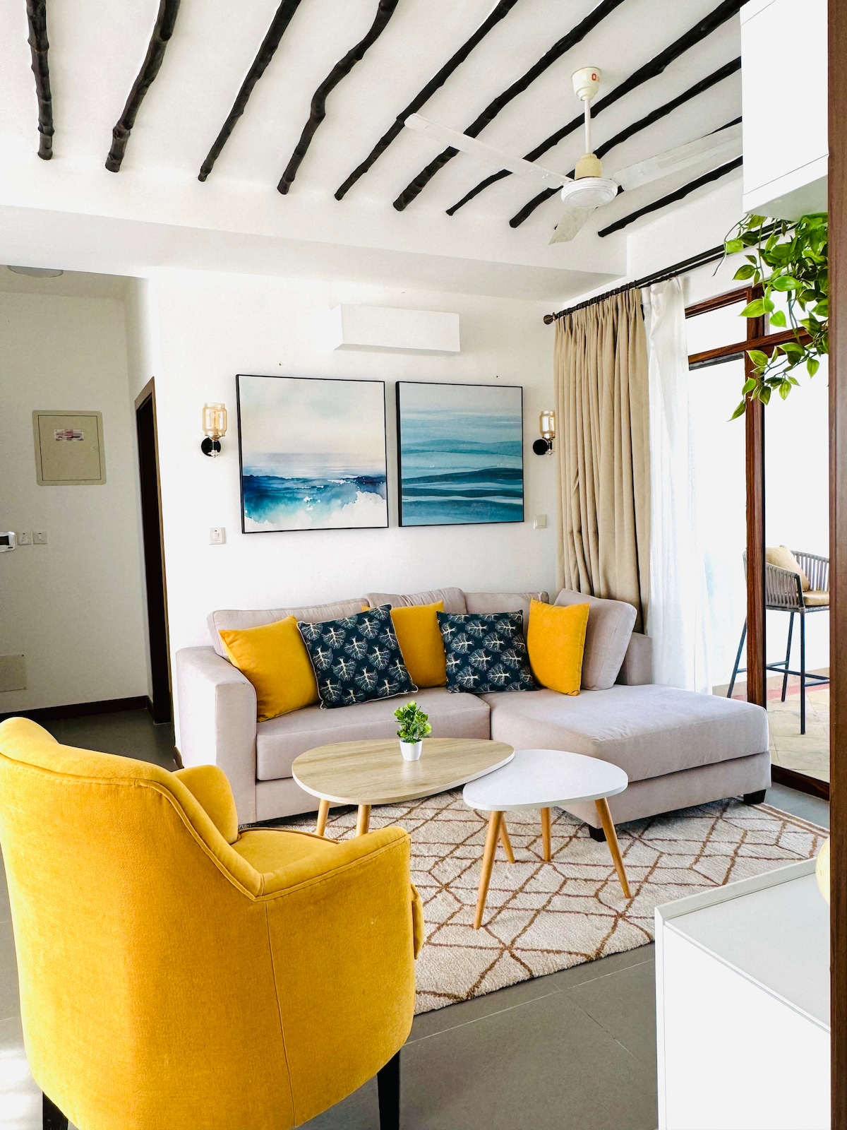 Introducing ThirtyVII . —> A stylish two bedroom apartment in Nyali , Mombasa right on Mt Kenya Road . —> Its 3 mins walk from Voyager beach with close proximity to Promenade mall , Nyali Center , City Mall, supermarkets and food places . —> It is spacious, peaceful & calming .All rooms are fitted with LG AC units .There is free parking , fast wifi, a pool & a lift. The modern touches embellished with woodwork &carefully chosen interior will give a homely feel.