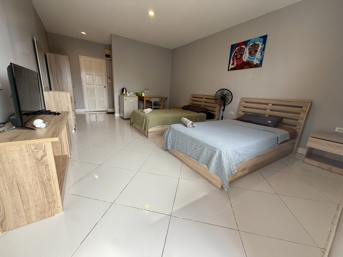 Unser Gästehaus liegt 100 m vom Strand Jomtien entfernt. Es verfügt über ein Restaurant im Erdgeschoss. Es gibt viele Bars/Restaurants/Praktischer Laden/Massage-Shops/Geschenkläden im Gebäude. Am Strand gibt es Sonnenschirme und Liegestühle zu mieten, sowie viele Reisehändler. Dort wohnst du komfortable Freizeit und leckeres Essen. Wir bieten einen Sonderpreis für Langzeitaufenthalte an. Wir bieten starkes WLAN an. Es ist eine gute Wahl, um online zu arbeiten . Nebenkosten und WLAN sind kostenlos.