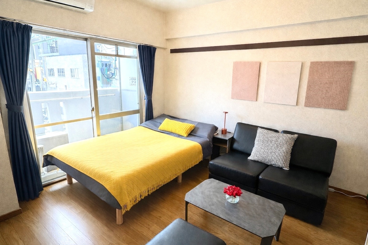 5 Minuten zu Fuß von der U-Bahn-Station Tenjin in Fukuoka. Ein renoviertes Apartment. 1 Doppelbett und 1 Schlafsofa.