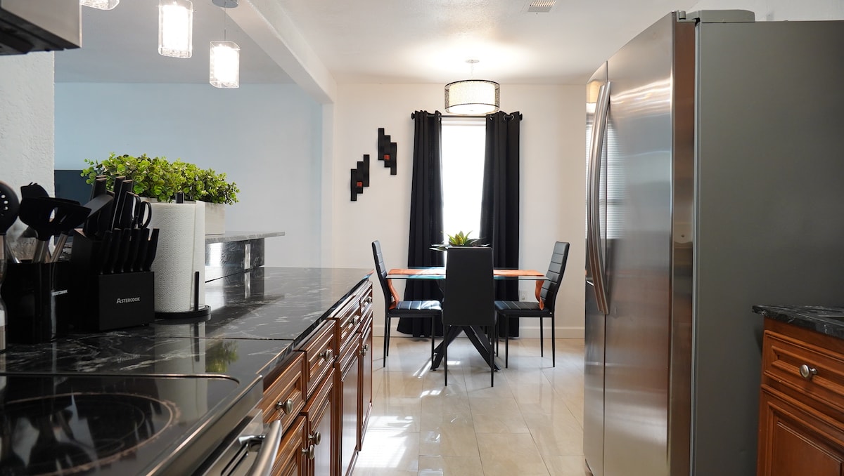 Schön eingerichtetes Haus mit 3 Schlafzimmern/2 Bädern in einer großartigen Nachbarschaft, perfekt, um dein zweites Zuhause zu machen. Genieße dieses wunderschön eingerichtete, kürzlich erbaute Haus bei deinem nächsten Urlaub oder deiner nächsten Geschäftsreise. Dieses warme, einladende Zuhause ist geräumig (über 1.600 Quadratfuß) und privat mit dem gleichen Komfort wie zuhause. Die Küche ist komplett ausgestattet. Eine große Waschmaschine und ein Trockner sowie Annehmlichkeiten werden bereitgestellt, um alle deine Bedürfnisse zu erfüllen. Diese Unterkunft verfügt über eine 2-Auto-Garage, eine hintere Terrasse und einen eingezäunten Hinterhof.