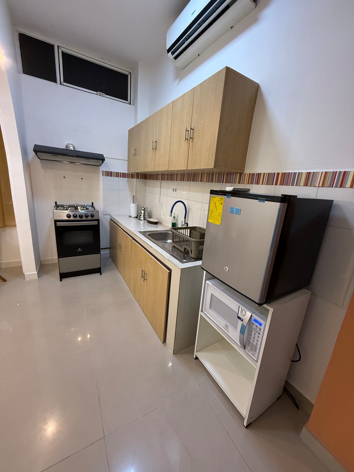 Relájate en este espacio tranquilo y elegante. "Suite de Lujo en el Corazón de la Ciudad: Elegancia y Comodidad a otro nivel" Control de luces y electrodomésticos con Alexa, TV, aire acondicionado y refrigerador. Todo lo que necesitas para hacer trabajo remoto, preparar alimentos y descansar como en casa.