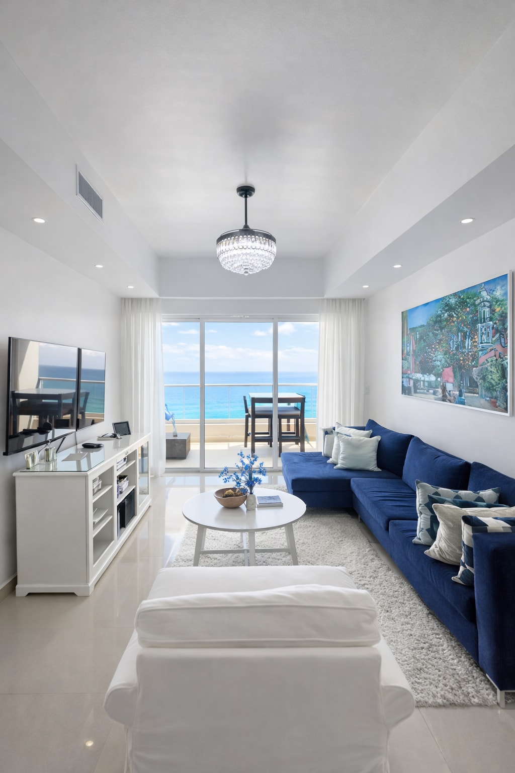 Espacioso, cuidadosamente decorado y muy iluminado, como una burbuja flotando en el inmenso Mar Caribe brindandote una sension de paz y relajacion en todos los detalles y colores que se coomplementa por todas las comodidades que lo componen. Tiene una vista panoramica de 180 grados de Juan Dolio y sus espectaculares atardeceres de colores brillantes que son un espectaculo para disfrutar en familia y amigos, con la arena en tus pies o las brisas caribeñas en las alturas del piso 19.