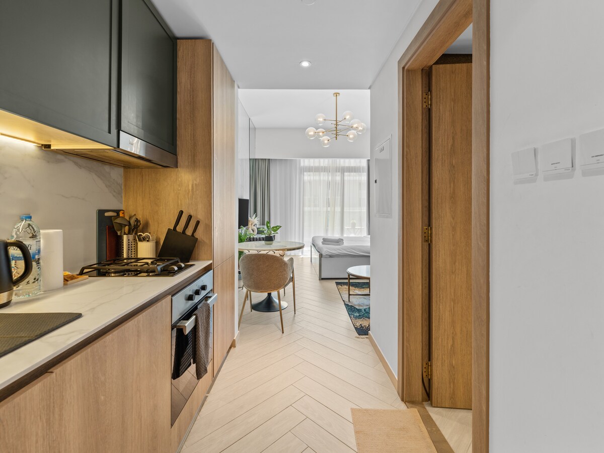 🏡 Entdecke dein zweites Zuhause in unserer wunderschön eingerichteten Wohnung mit 1 Schlafzimmer in der pulsierenden Gemeinde Jumeirah Village Circle (JVC), Dubai 🇦🇪. ☀️ Dieser helle und luftige Raum ist auf Komfort und Bequemlichkeit ausgelegt und verfügt über einen gut beleuchteten Wohnbereich, der sich nach einem Tag voller Erkundungen perfekt zum Entspannen eignet, und einer voll ausgestatteten Küche, in der du deine Lieblingsgerichte zubereiten kannst. 🛏️ Das gemütliche Schlafzimmer bietet einen ruhigen Rückzugsort mit reichlich Stauraum, um alles organisiert und ordentlich zu halten.