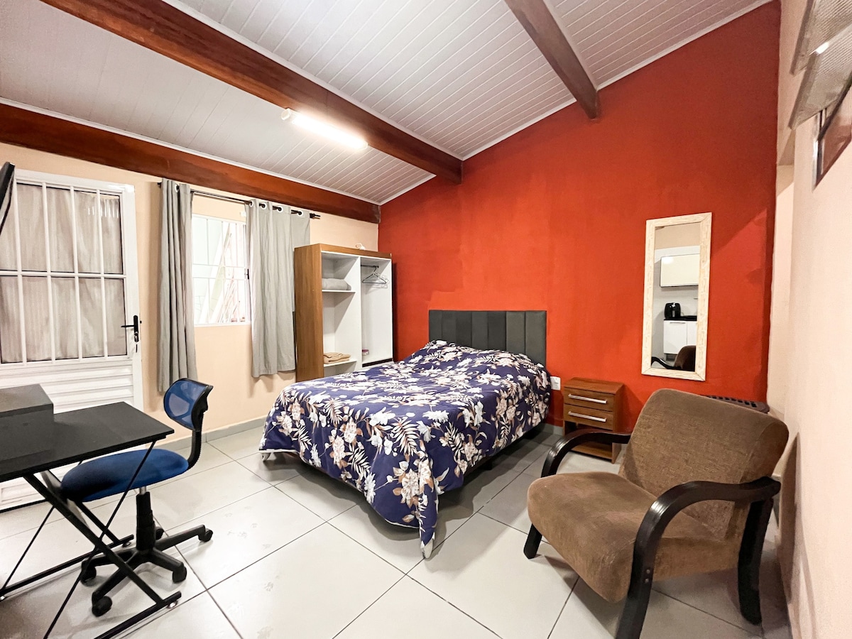 Ganze Unterkunft gut gelegen in Jundiaí. Nur 5 Minuten von Banken, Lotterie, Märkten und Apotheken und Bushaltestelle entfernt. In der Nähe von Einkaufszentren und mit einfachem Zugang zu Anhanguera und Bandeirantes. Nur 10 Minuten vom Zentrum mit dem Auto. Der Raum verfügt über ein Schlafzimmer mit einem Doppelbett und Smart-TV, eine ausgestattete Küche, ein Badezimmer und großartiges WLAN. Der Raum ist sehr ruhig, vor einem Platz. Von Bäumen gesäumte Straße und sehr ruhige und familiäre Nachbarschaft.