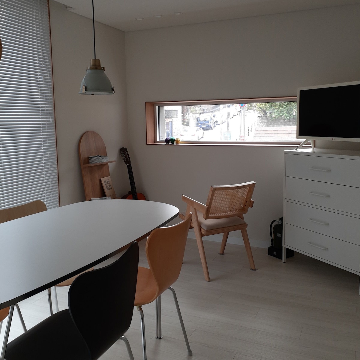 Dies ist ein kleines Neubau in ruhiger Wohnlage 5 Minuten vom Bahnhof Gangneung entfernt.Mein Hauptfach war Innenarchitektur, also interessierte ich mich für Architektur.Ich sah so ein langjähriges Streben in einem romantischen Haus. Ein modernes und lustiges Duplex-Gebäude mit einer Kombination aus weißen Tönen und Holz, jeweils mit einem eigenen Badezimmer im ersten und zweiten Stock, und zeigte auf das Design, um sicherzustellen, dass das Licht und die Brise funktionieren, während sie von außen perfekt blockiert sind. Die Aussicht aus dem zweiten Stock, Sonnenlicht und Wind sind exotisch und besonders, so dass es ruhig ist. Die Blüte im kleinen Garten auf der Terrasse im ersten Stock befindet sich in den Blumen. Ich denke, du kannst deinen Alltag für eine Weile vergessen und dich entspannen, um deinen Geist zu waschen.