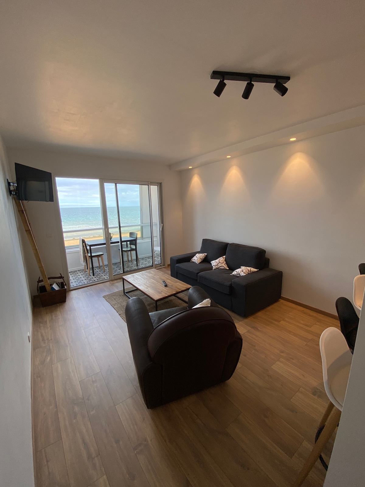 Tolle Aussicht auf das Meer und direkter Zugang zum Strand, in der Nähe des Stadtzentrums, der Märkte, des Hafens, des Skateparks, des Kinos, der Bowlingbahn, der Restaurants, des Pools, des Minigolfplatzes. T2 Durchgangswohnung, in einwandfreiem Zustand, eine sichere Residenz mit Aufzug. Wohnzimmer mit einem BZ für 2 Personen, Einbauküche. Eine Loggia mit Meerblick. Ein Zimmer mit seiner Loggia nach Süden, Bett von 160 cm, Ankleidezimmer mit Kleiderschrank. privater Parkplatz. Gemeinsamer Fahrradabstellraum