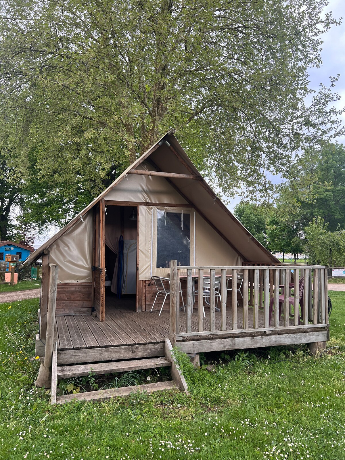 tente safari situé dans camping 3 étoile doté d'une piscine,air de jeux,grande prairie et sentier de randonnée a proximité a 5 min en voiture du lac de vouglan et deux minutes en voiture d'orgelet. attention sanitaire collectif à proximité. borne de recharge électrique payante, machine a laver payante dans le camping,dépôt pain et Petit restauration ouvert celon influence.