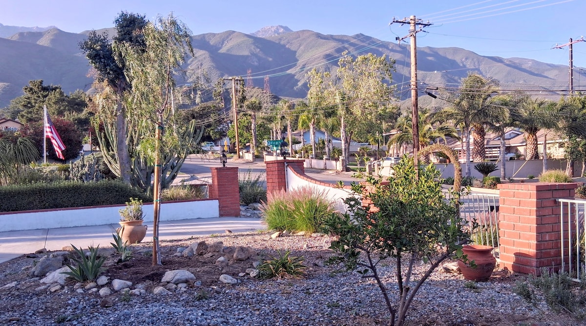 Hillside Guesthouse auf 5 Hektar! Unser Anwesen, eines der letzten originalen Orangenhainhäuser, liegt neben einem Naturschutzgebiet für einen ruhigen Rückzugsort. Obwohl wir privat und ruhig sind, sind wir nur wenige Minuten von den Claremont Colleges, der Webb School und den lokalen Einkaufsmöglichkeiten entfernt. Genieße einen ruhigen Rückzugsort nach einem Tag voller Erkundungen, Familienbesuch oder Geschäftsreisen. Deine Pension verfügt über einen privaten Eingang, ausreichend Parkplätze und durchdachte Annehmlichkeiten, um deinen Aufenthalt komfortabel zu machen.
