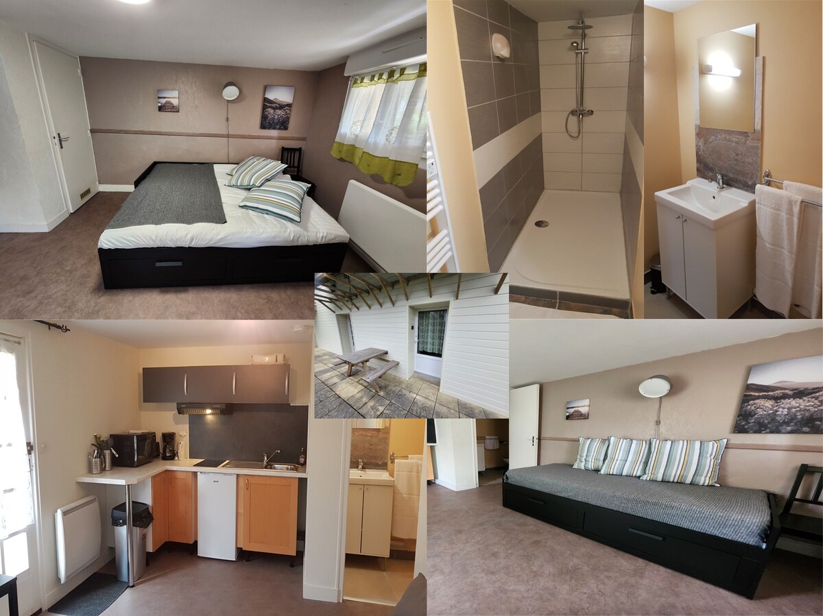 Unterkunft nur 150 Meter von den Thermen entfernt, in der Nähe des Sees, der Geschäfte und aller Annehmlichkeiten. Sie werden die funktionellen Wohnungen, WLAN, Waschmaschine, Trockner... wenn Sie Fragen haben, zögern Sie nicht, ich beantworte sie gerne. Bénédicte