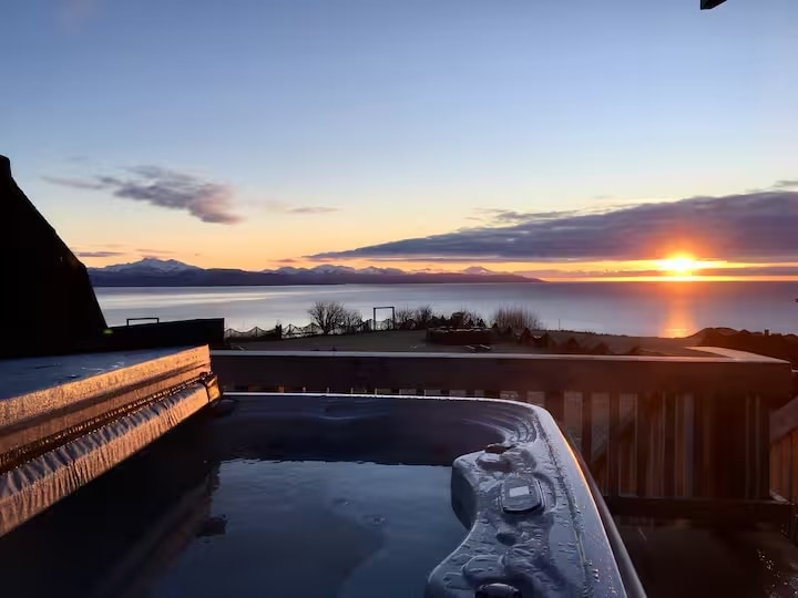 Bay & glacier views 2 bed w/ hot tub, fish storage