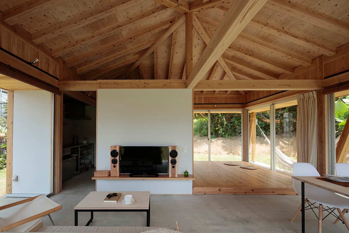 Das hölzerne Hei-e-An-no-Yado liegt etwa 30 Autominuten vom Flughafen Amami entfernt, direkt am Pazifik, inmitten von Mandarinenbäumen. Ein ganz anderes Wohnerlebnis als in einem Hotel. Wir möchten, dass Sie in einem privaten Raum, in dem Sie das sanfte Rauschen der Wellen und das Zwitschern der Vögel hören können, aufwachen und die Energie der Morgensonne auf Ihrer Haut spüren und die Natur mit allen Sinnen erleben können. Das ist die Art von Unterkunft, die voller solcher Gedanken steckt. Vom 10,8 m² großen Schlafzimmer und dem 21,6 m² großen Wohnzimmer aus können Sie das Panorama des Himmels und des Meeres von Amami genießen. Der Strand ist nur wenige Minuten zu Fuß entfernt, und ein Spaziergang am Morgen ist etwas ganz Besonderes. Ausgestattet mit allen Annehmlichkeiten. Die Küche ist mit Kochutensilien und Geschirr ausgestattet. Im Garten mit Rasen und Meerblick können Sie auch grillen (gehen (gegen Gebühr). Kinder sind auch herzlich willkommen. Für Einkäufe gibt es Super Big Two (mit einer großen Auswahl an Souvenirs aus Amami) innerhalb von 5 bis 10 Minuten mit dem Auto. Marchen-Markt, Drogerie Mori und ein Convenience-Store. Es gibt auch Restaurants wie Joyful, Yakitoriya Tetsu-chan, Torihiki Hisakura und schicke italienisch-asiatische Restaurants, die lokales Gemüse verwenden. Diese Unterkunft ist eine Unterkunft ohne Gastgeber, um Ihre Privatsphäre zu schützen. Wir hoffen, dass Sie sich in unserem Haus wie zu Hause fühlen und Ihren Urlaub genießen können.