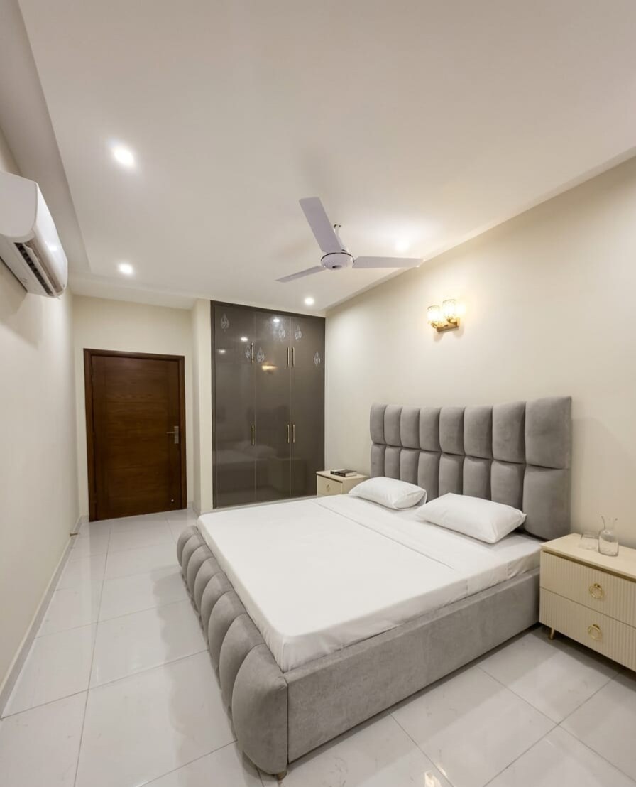 Enjoy memorable experience at a centrally-located place. ⢠Ultra Fast Wifi with 55 inch LED for everlasting Netflix experience. ⢠Central Cooling and heating system. ⢠Fully Equipped Kitchen with complementary tea on arrival. ⢠Gated and Guarded Car Parking with 24/7 CCTV . ⢠Grassy Terrace with cozy chairs for peaceful sittings. â˘Just a 5 minute walk to DHA Phase 5 Market and Imtiaz Super Store. â˘Only 5 minutes drive to Lahore Ring Road. â˘Just 10 minutes drive from Lahore Airport.