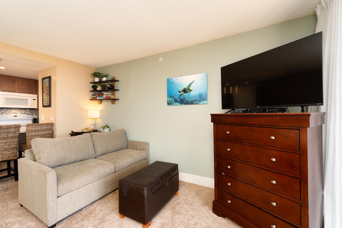 Genieße den Luxus eines Strandhotels, ohne hohe Preise in dieser Maui Junior Suite zu zahlen! Sie bietet einen phänomenalen Blick auf Molokai, der ideal für ein romantisches Paar oder für einen kleinen Familienurlaub ist. Nachdem du Maui erkundet hast, kehre in dieses zentral gelegene Paradies zurück, um dich in den Annehmlichkeiten des Aston Kaanapali Shores zu entspannen. Runde deinen Tag mit Blick auf den Sonnenuntergang von deiner privaten Veranda (Balkon) ab oder gehe hinunter zum Strand, der weniger als fünf Minuten von deiner Haustür entfernt ist!