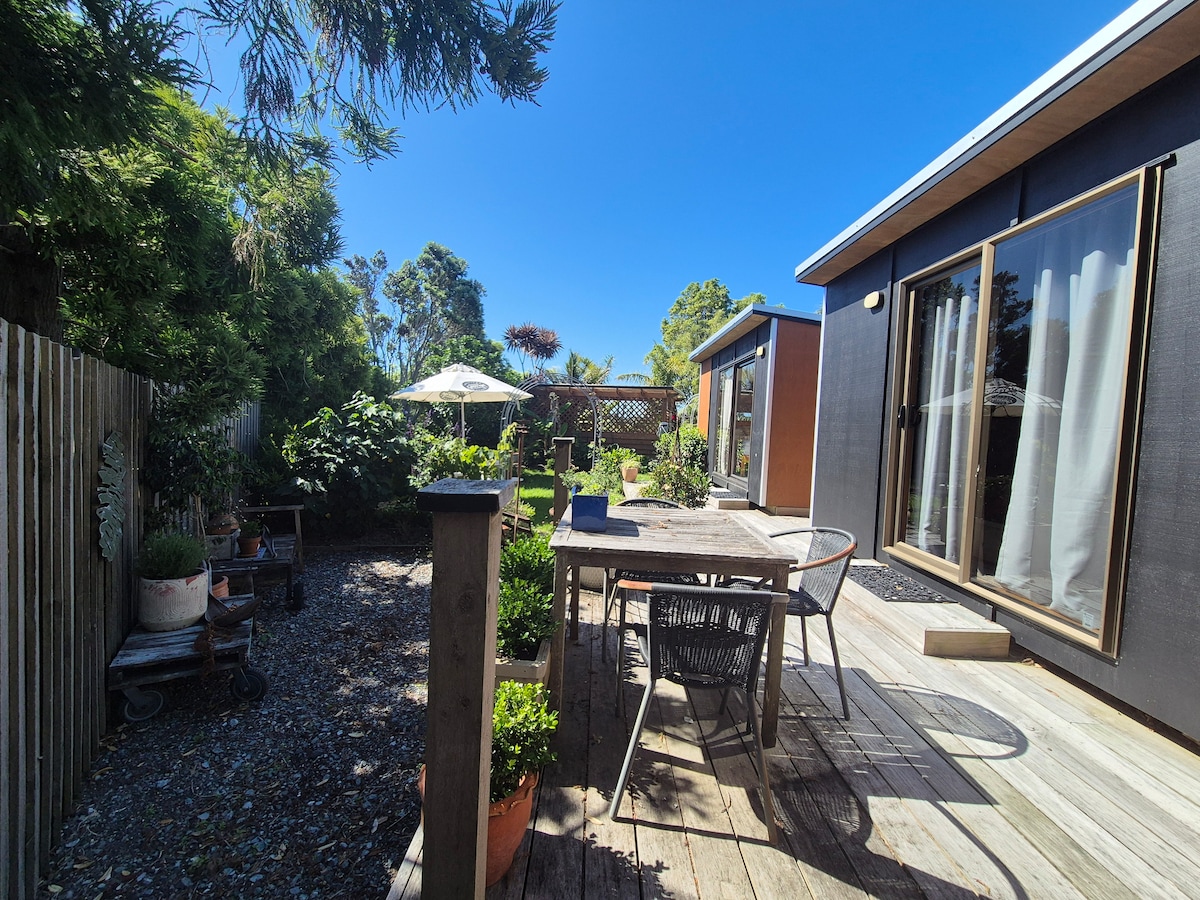 Tī Kōuka Cabin is a charming two-bedroom property with tranquil surroundings and is thoughtfully designed for relaxation and convenience, perfect for couples, families, or small groups. Sleeping six comfortably, it features a queen bed, two extra-long singles, and a double sofa bed in the lounge. Enjoy modern comforts including a Smart TV with Netflix, high-speed WiFi, EcoStore products, and shared guest laundry. Step onto your private deck or let the firepit set the scene for a BBQ dinner.