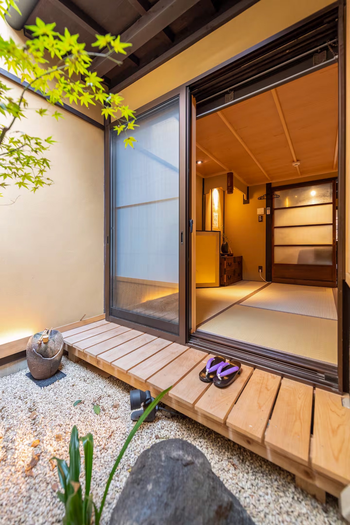 Angel Villa Unterkünfte in dieser zentral gelegenen Unterkunft. Ein 100 Jahre altes echtes Stadthaus wird in einen Innenhof im Kyoto-Stil, ein halboffenes Bad und einen privaten offenen Raum umgewandelt, um Gäste willkommen zu heißen. 10 Minuten vom Bahnhof Kyoto, zu Fuß zum geschäftigen Geschäftskreis von Shijo, 8 Gehminuten von der U-Bahn-Station Gojo, 2 Gehminuten von der nächsten Bushaltestelle, mehreren Bushaltestellen zu den wichtigsten Sehenswürdigkeiten von Kyoto entfernt und die Lage ist ausgezeichnet und günstig.Es gibt auch eine Stadtrundfahrt-Bushaltestelle 7 Minuten zu Fuß, die fast jede Sehenswürdigkeit in Kyoto erreichen kann.Es gibt einen 24-Stunden-Supermarkt, einen Supermarkt, ein Café, einen berühmten Teigtaschen-Ramen-Laden, einen täglichen Laden, der auf einem Michelin-Restaurantführer aufgeführt ist, eine Bar und einen Ort, an dem du ein Fahrrad mieten kannst.Für weitere Details befolge bitte meinen Reiseführer. Die Angel Villa wurde von einem jahrhundertealten Machiya-Haus umgebaut.Das Äußere bewahrt die einzigartigen Gitterfenster des Kyoto Machiya, des blauen Ziegeldaches und des Bambusvorhangs.Im Inneren des B&B befindet sich ein einzigartiger Raum, der moderne japanische Elemente verbindet.Erweiterte und komfortable Geräte mit Kinderessstühlen und Tatamimatten für Kleinkinder, Doppelbäder für den Komfort und die Bequemlichkeit deines Zuhauses.