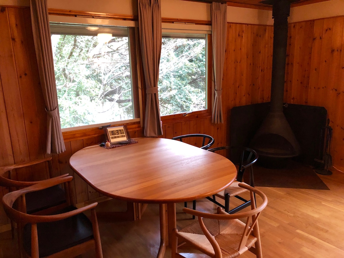 ②自然豊かな広々としたウッド調の貸切一軒家で身も心もリフレッシュ。こたつのある寛ぎの時間