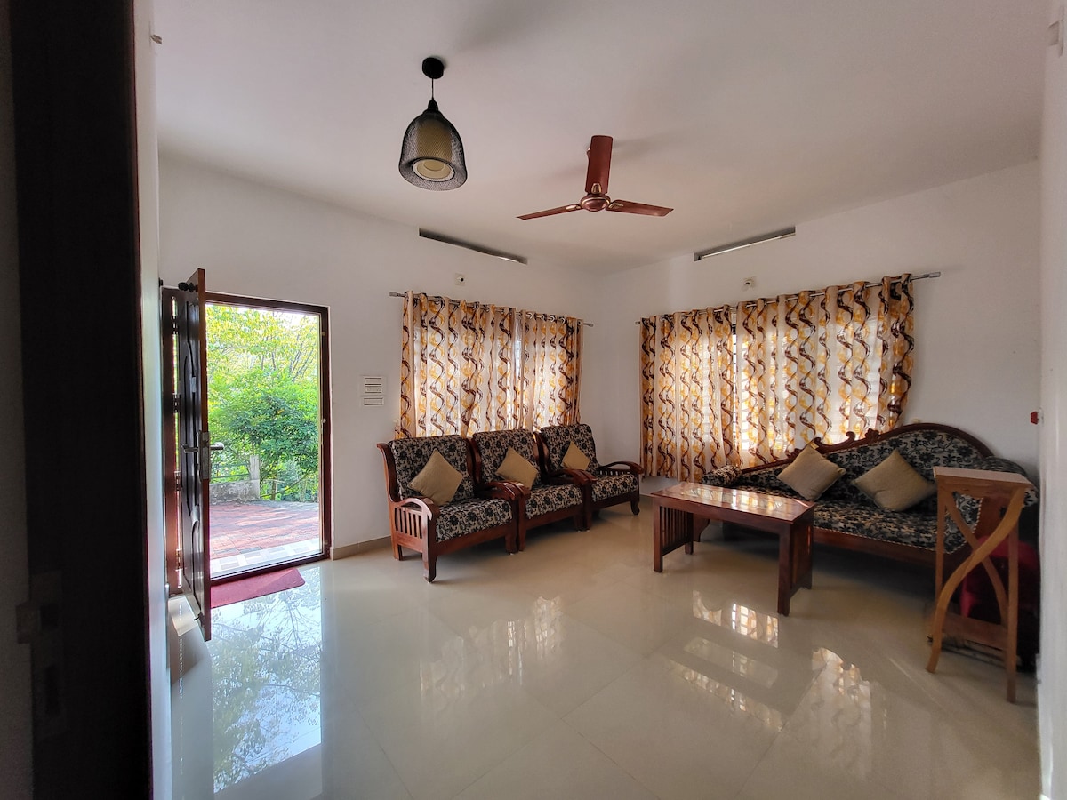 Mannoor Bauernhof ist der perfekte Ort, um sich zu entspannen und die Natur zu erholen. Die Gastgeber servieren köstliche lokale Kerala-Küche und sind eine Fülle von Informationen über die Region. Das Zimmer besteht aus einem geräumigen Badezimmer, einem Schlafzimmer mit Bergblick und einem Wohnzimmer. Wir haben einen Fernseher und einen Esstisch und Stühle und wenige traditionelle Stühle, um die malerische Schönheit von deinem Schlafzimmer aus zu genießen.