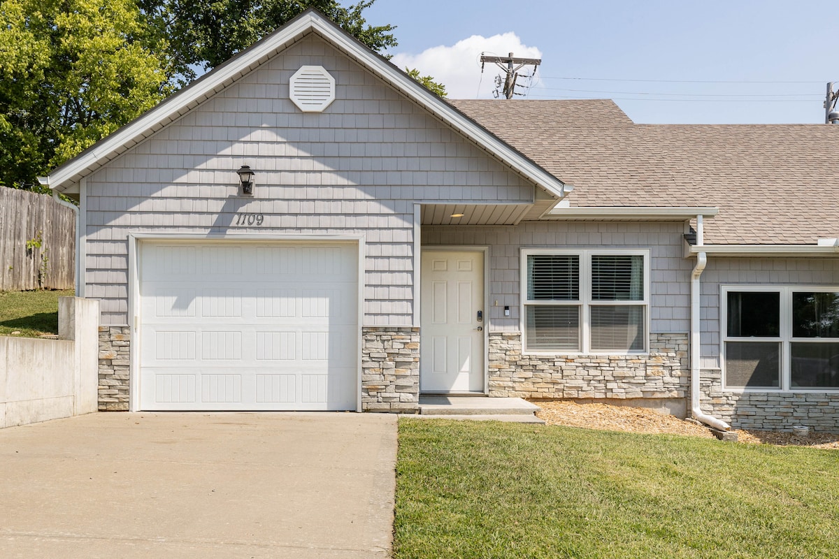 Genieße dieses ganze Stadthaus mit 1 Schlafzimmer mit Kingsize-Bett, 1 Schlafzimmer mit Queensize-Bett und 2 Badezimmern! Zugang zu einer 1-Auto-Garage zusammen mit Parkplätzen in der Einfahrt. Direkt an der Straße vom Homefield Showcase Field, Legends Outlets Mall, Great Wolf Lodge, Children's Mercy Park (Sporting KC) und Kansas Motor Speedway! 5 Minuten zur I-70 und I-435, 11 Meilen zu P&L, 14 Meilen zu Westport und 25 Meilen zum Flughafen! (MCI)
