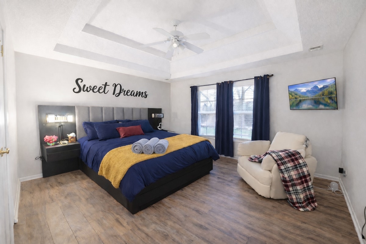 Willkommen in deinem zweiten Zuhause in Gladstone, Missouri! Diese charmante Unterkunft mit 4 Schlafzimmern und 2,5 Bädern ist perfekt für Familien oder Geschäftsreisen! Unser Hauptschlafzimmer mit Kingsize-Bett, Whirlpool, begehbarer Dusche, geräumigem begehbaren Kleiderschrank. In bester Lage in der Nähe von World of Fun, KC Zoo, Mall, KC Airport, Innenstadt und Arrowhead Stadium gelegen, hast du schnellen Zugang zu den wichtigsten Sehenswürdigkeiten. Das Haus verfügt über eine voll ausgestattete Küche, ein TESLA-Ladegerät und einen Außengrill – alles, was du für einen komfortablen und erholsamen Aufenthalt benötigst.