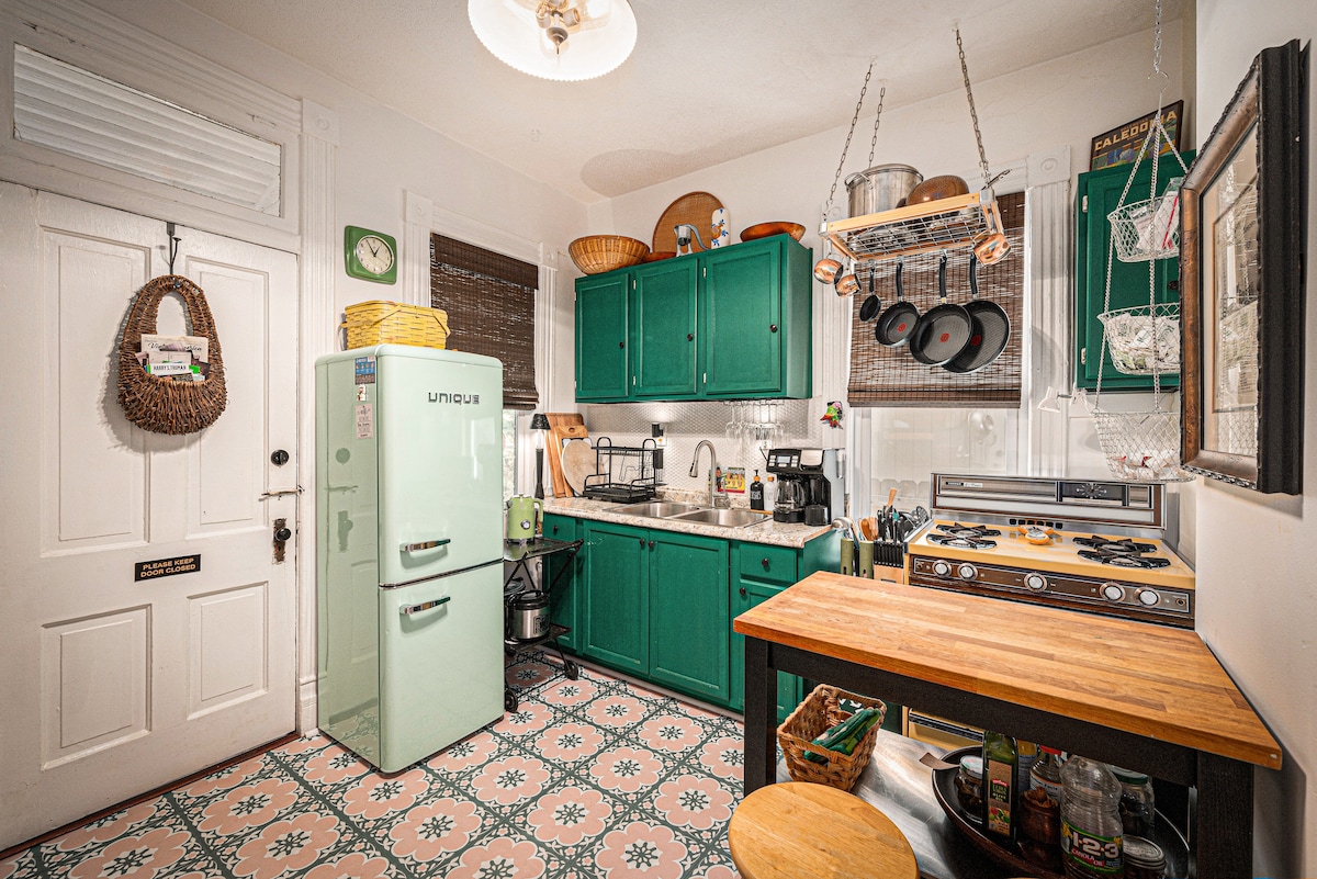 A 125-year-old bungalow packed with personality. Inside you’ll find curated worldly décor, many lounge spaces, and the house’s most famous feature: the Lucky Kitty Tiki Lounge, a hidden bar built inside the old garage. Outside, relax in the barrel sauna, cold plunge, and stock tank pool, gather around the fire pit, and unwind under the string lights after a night exploring Kansas City. It’s a one-of-a-kind stay just minutes from downtown, the stadiums, and some of the city’s best restaurants.