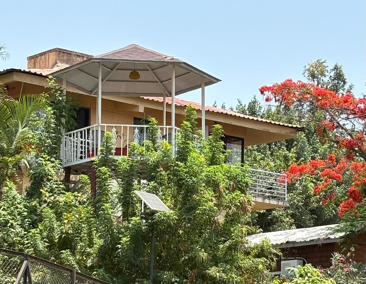 Perched on a cliffside with sweeping valley views, our cozy home is the perfect escape for a group of four to relax, recharge, and reconnect with nature. Step outdoors to enjoy your morning coffee in the gazebo, or unwind with a bonfire on winter evenings. In monsoon, explore nearby treks and waterfalls just a short distance away. The home has parking on premises, accommodation for drivers nearby. We also offer home-cooked meals for an extra charge, and can accommodate additional guests.