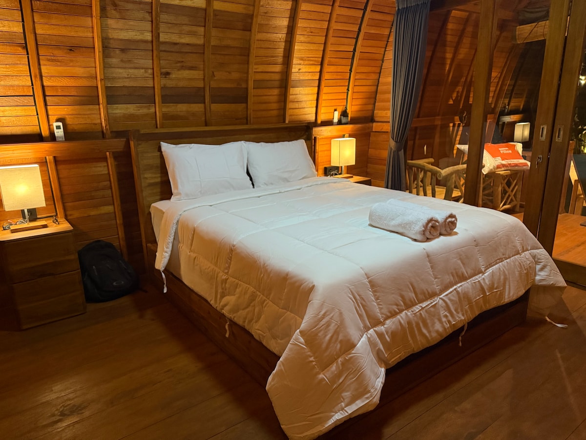 Unsere Hütte liegt direkt am Rande des unberührten Batur-Sees und bietet einen atemberaubenden Panoramablick auf das Wasser und den majestätischen Batur-See. Genieße die ruhige Umgebung und die frische Bergluft, während du dich in dieser wunderschönen Umgebung entspannst. Verlasse deine Hütte und gehe einen kurzen Weg zum Seeufer hinunter. Genieße das Angeln oder entspanne einfach am Wasser.