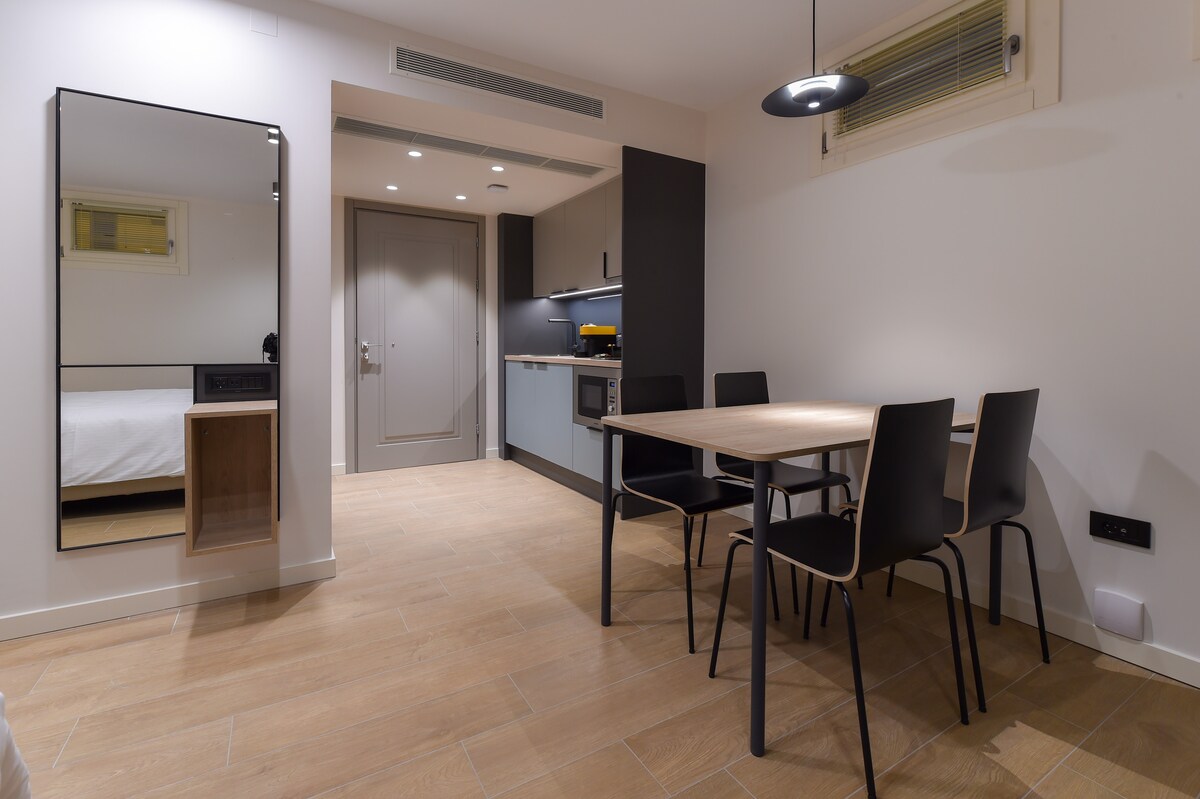 Ein moderner und stilvoller Raum heißt Sie herzlich willkommen und erfüllt alle Ihre Bedürfnisse. Es verfügt über ein komfortables Schlafzimmer mit einem geräumigen Kleiderschrank und einem Smart-TV, eine voll ausgestattete Küche, ein eigenes Bad, eine Klimaanlage und kostenloses WLAN. Sie ist nur 5 Minuten zu Fuß vom Hauptplatz der Stadt entfernt. Gegenüber gibt es einen Supermarkt, eine Apotheke, eine Bäckerei und andere Geschäfte. Wir stehen Ihnen für alle Informationen, die Sie über die Region benötigen, zur Verfügung.