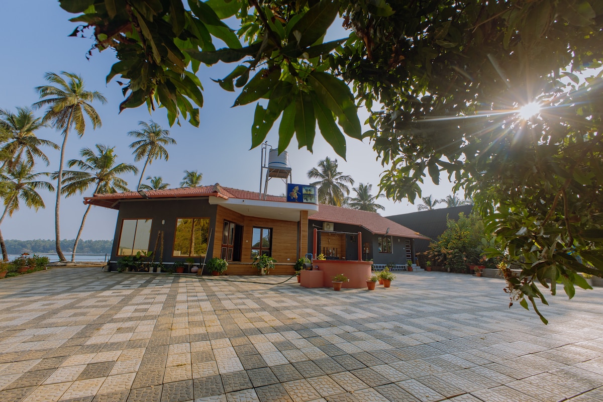 Ocean facing house offering a jaw dropping view of the sea with the cleanest & peaceful shore, also experiencing gentle breeze surrounded by coconut palms . There's more to experience by staying at Vedic beach farm. BASIC INFO - Main road - 200Mtr super market - 500Mtr City center 5km Railway station 5km Nirvana beach 2km . Ferry junction 3Km Gokarna 30 min drive Cafes and restaurants within 5 min of reach. Safety and hygiene maintained.