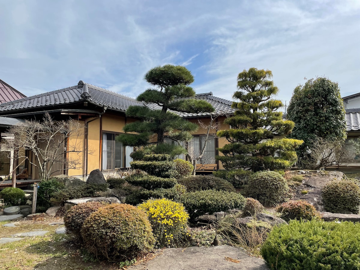 日本庭園と床の間のある和室と洋室(ベッド2 布団3) そして古い蔵の中の隠れた空間(Jazzbar風)でゆっくり。 Unser Haus verfügt über einen traditionellen japanischen Garten und ein Zimmer im japanischen Stil mit einem Schlafsaal. Es gibt auch ein traditionelles japanisches Lagerhaus. (Jazz-Bar-Stil) 家の周辺には果樹園や水田が広がっています。 収穫期には美味しい果物と野菜とお米を食べることができます。 Diese Gegend ist ein landwirtschaftliches Fördergebiet. Rund um das Haus gibt es Obstgärten, Gemüsefelder und Reisfelder. Während der Ernte kannst du köstliches Obst und Gemüse und Reis essen.