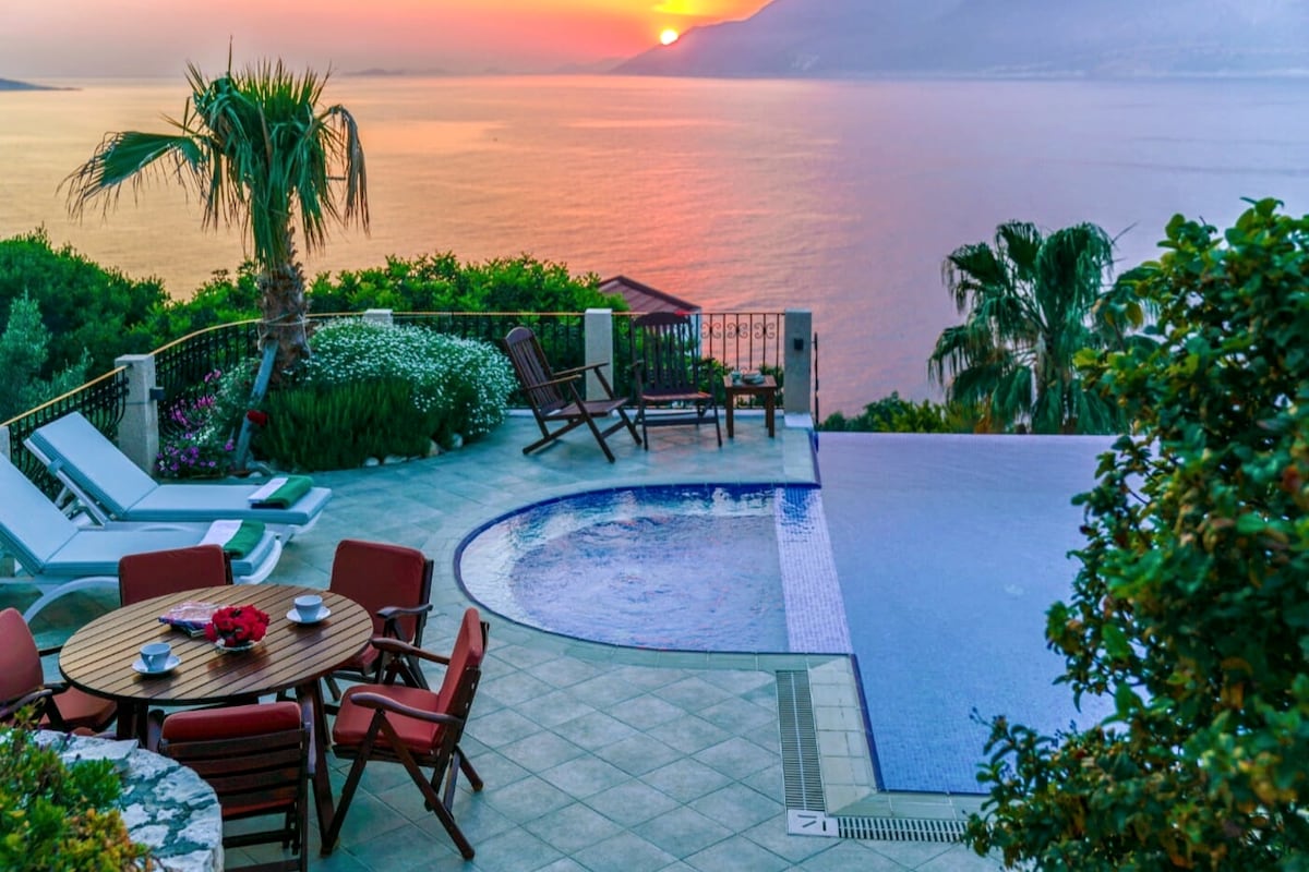 Villa Poseidon ist nicht in Kaş, wie in Airbnb Standort es angezeigt wird sondern auf der Kaşhalb İnsel, eine 372 q2 Luxusvilla mit einem beheizten Pool im Winter, auf einem 2000 q2 Grundstück am Meere gebaut ;bietet einen ungewöhnlich weiten Blickwinkel zu allen Richtungen mit dem sie alle Farbtöne und Schattierungen des Mittelmeers zu jeder Tageszeit erblicken. Villa wird sachgemäß gesäubert, alle Lebensmittel werden geliefert.Mit Pool und privaten platform zum Meer bietet viel Privatsphäre.