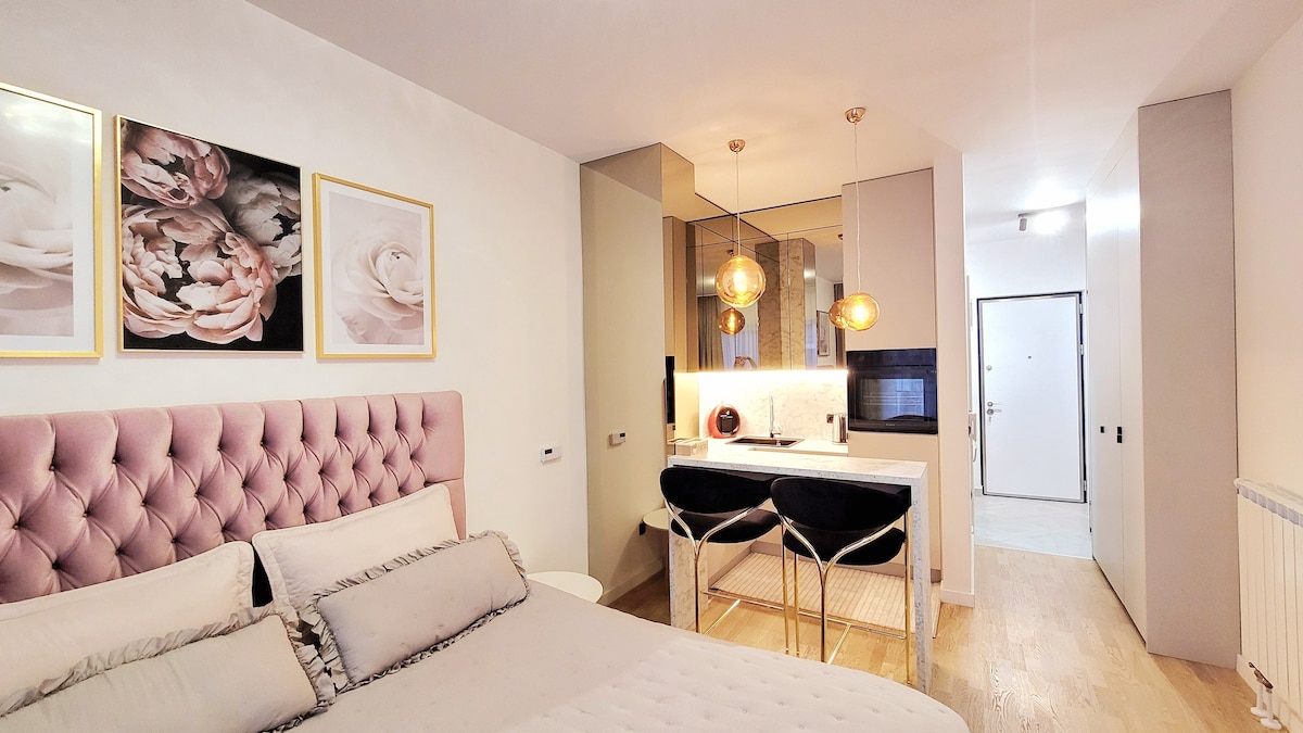 Genieße ein stilvolles und cooles, hotelähnliches Erlebnis in diesem zentral gelegenen Loft. Mache einen Spaziergang von einer Minute und erlebe die wichtigsten Sehenswürdigkeiten von Sarajevo. Schlendere durch die historischen Straßen von Bascarsija und kehre dann für einen Kaffee oder ein Mittagessen in dieses städtisch-schicke Studio mit voll ausgestatteter Küche und allem, was du brauchst, zurück, um dich wie in einem 5-Sterne-Haus in Sarajevo zu fühlen.