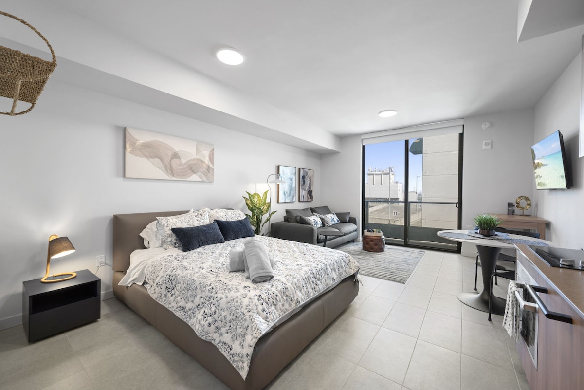 Modernes Studio in Miami mit atemberaubender Aussicht! Genießen Sie einen gemütlichen Raum mit einem Kingsize-Bett, Smart-TV, schnellem WLAN und einem privaten Balkon. Perfekt zum Entspannen nach dem Entdecken des Strandes, des Nachtlebens und der besten Restaurants in der Nähe. Gegenüber dem Bayside Marketplace Waterfront gelegen. Verfügt über eine Küchenzeile, eine zentrale Klimaanlage und einen sicheren Zugang zum Gebäude. Ideal für Alleinreisende oder Paare, die Komfort und Stil im Herzen von Miami suchen. Buche noch heute deine Reise 🌴