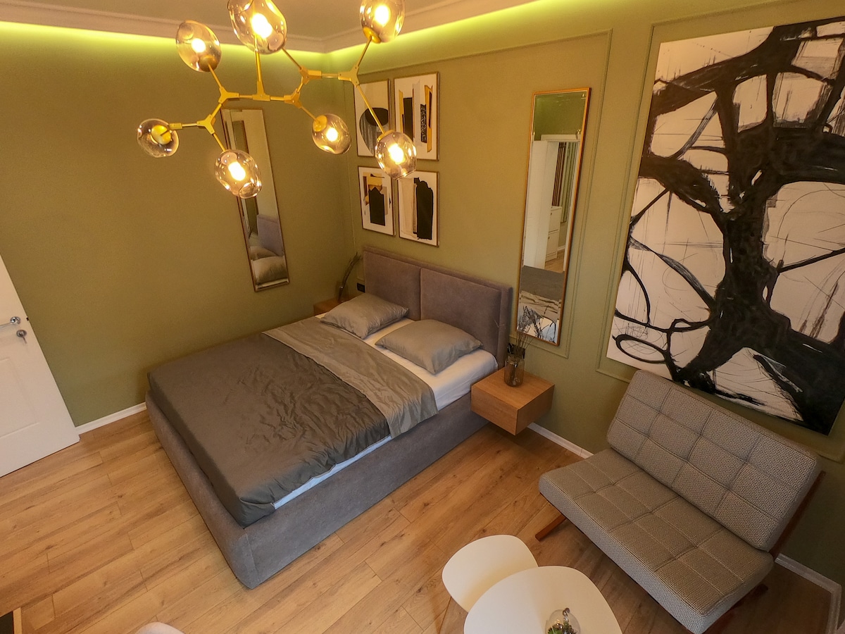 Willkommen in unserer schicken 2-Zimmer-Wohnung im Herzen von Tirana. Neben dem Skanderbeg-Platz und dem Nationalmuseum ist sie nur einen kurzen Spaziergang vom lebhaften Viertel Blloku entfernt. In 5 Minuten erreichst du das Bunkart-Museum, das Haus der Blätter, das Nationale Kunstmuseum oder den geschäftigen Neuen Basar. Die Wohnung ist für den modernen Reisenden mit Highspeed-WLAN konzipiert, ideal für digitale Nomaden. In der Nähe befinden sich Top-Restaurants, Supermärkte und alles, was du benötigst. Erlebe den Charme von Tirana von unserer Wohnung aus. Wir freuen uns darauf, dich bei uns zu begrüßen.