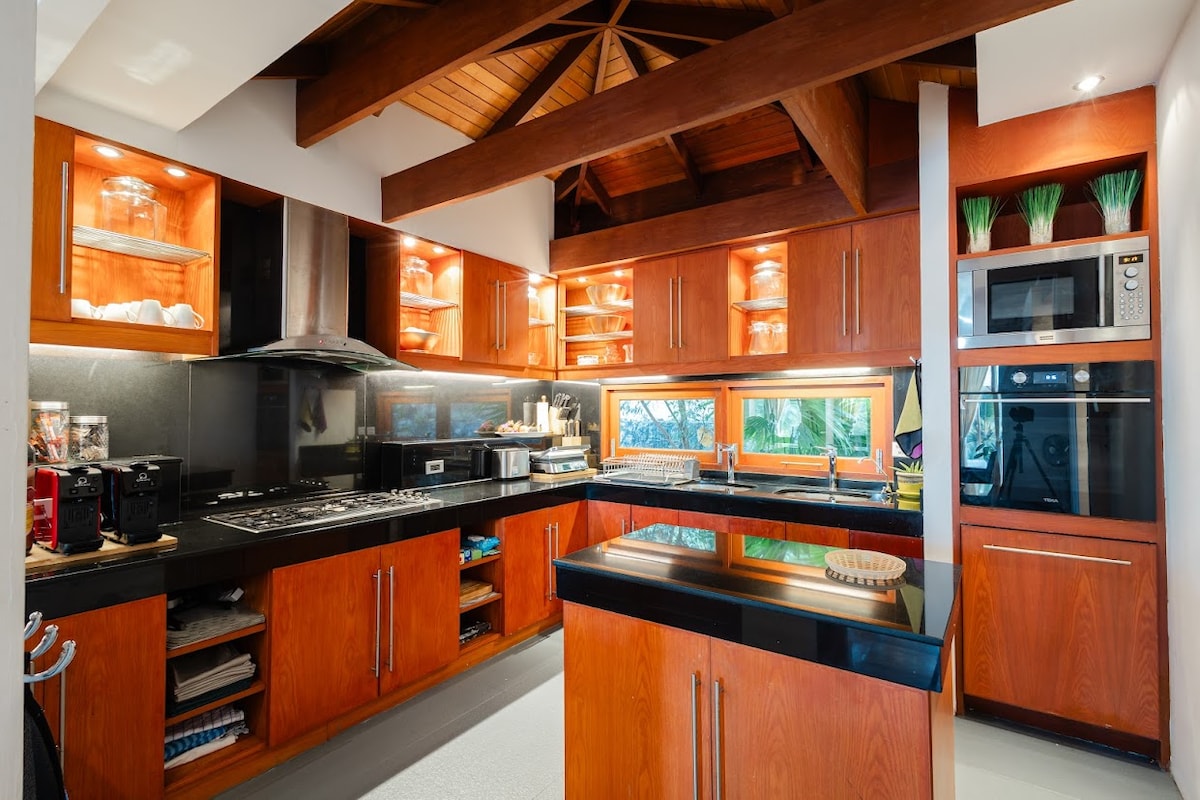 Moderne und gemütliche Villa mit Panoramablick auf das Meer und die Berge mit privatem Swimmingpool. Diese Villa wurde von mir entworfen und eingerichtet und natürlich ist jedes Kunstwerk mein eigenes. Die Villa mit 3 Schlafzimmern wurde aus langjähriger Erfahrung als Gastgeber und auf meiner Reise entworfen. Der Hauptschlüssel ist, dass jeder seinen Aufenthalt mit einem tollen Erlebnis und bestem Urlaub oder mehr genießt. Hoffentlich wird jeder den Aufenthalt in der Villa mit Panoramablick auf Grün, Meer und Sonnenuntergang genießen und lieben.