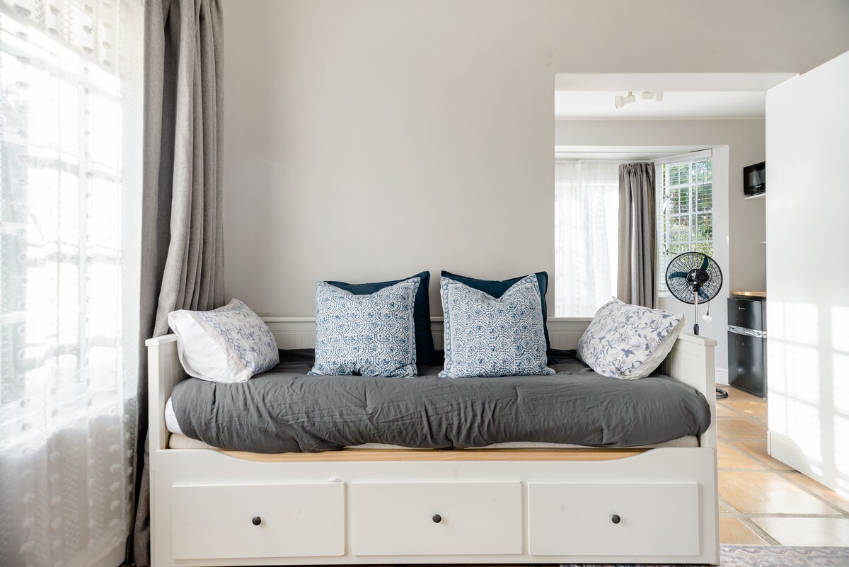 This stand alone cottage on our private property is located in the Bishopscourt area of the Western Cape. The cottage is an open plan lounge,bedroom with two big verandas, a kitchenette and a large bathroom with a shower and bath that opens out to a very private balcony with sun loungers and an outside shower. With magnificent views of the mountain and terrains, one can fully unwind and relax in this more than spacious cottage. This private cottage will be all yours during your stay. There are multiple lounging areas inside and outside the cottage. Our long serving housekeeper, Maks, will be there to look after you and make sure you always have what you need.She cleans and does the washing daily except on a Sunday. Located within walking distance to many stunning hikes, walking routes, mountain biking, and cycling routes. There are many places nearby that you can rent bikes and there is ample storage at the house for bikes to be stored. There is ample and secure parking on our property for the vehicle you bring along for your stay. I am usually here and am very happy to help with advice at all times. This home is in a quiet residential area with beautiful houses and leafy streets. Close to the botanical gardens and near the city. Uber Available.Safe parking on the grounds of the property. No need for Air Conditioning units as the mountain air in the mornings and evenings will be cool and crisp all year long. There is a ceiling fan, if you need additional cooling. Towels,beach towels,picnic basket all available at the cottage. The space is about 60sqm +