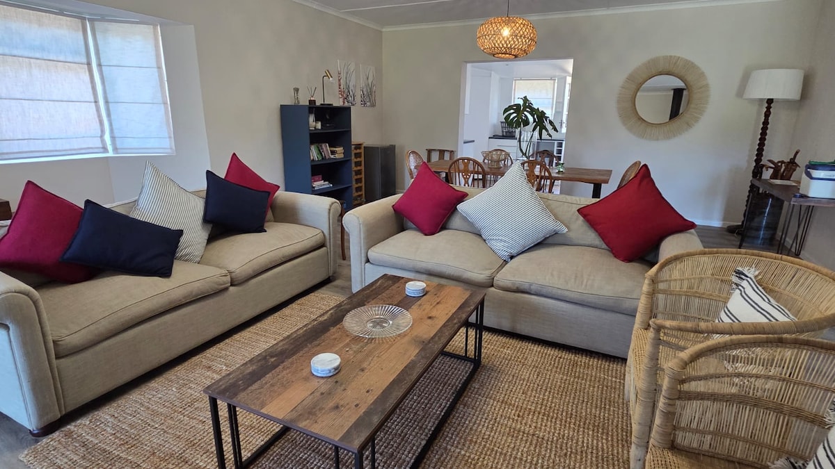 Willkommen in The Captain's Cabin - einem gemütlichen Familien-Retreat zur Selbstverpflegung in einer ruhigen Straße abseits der Westbourne Road. Dieses sichere Haus verfügt über 3 Schlafzimmer mit eigenem Bad (8 Schlafplätze, darunter eine private Wohnung), einen geräumigen Wohnbereich mit einer voll ausgestatteten Küche und eine große Terrasse mit Essbereich im Freien, ein Tauchbecken und Parkplätze abseits der Straße. Nur 5 Gehminuten von der Stadt und dem Bushmans River Sunset Beach entfernt, genießt du auch unbegrenztes WLAN und Familien-TV-Unterhaltung.