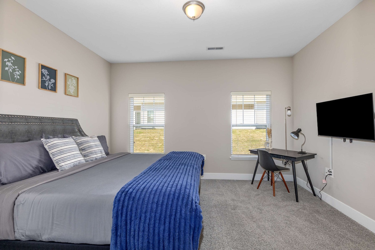 Willkommen in unserer trendigen und modernen 2-Zimmer-Wohnung in Wyoming, Michigan, nur einen Steinwurf von der Innenstadt von Grand Rapids entfernt. Erlebe die perfekte Verschmelzung von zeitgenössischem Stil und verspielter Atmosphäre. Mit einem Kingsize-Bett, einem Queensize-Bett und einem Essbereich für 4 Personen ist sie perfekt für einen unterhaltsamen Aufenthalt. Genieße Unterhaltung mit Fernsehern in jedem Zimmer und den Komfort einer 2-Auto-Garage. Deine schicke und lebendige Auszeit erwartet dich!