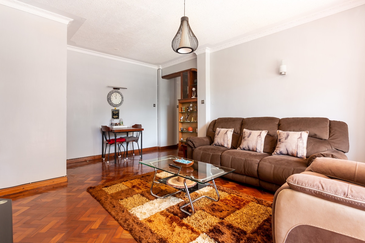 Diese neue und geschmackvoll gestaltete Wohnung liegt im Vorort Lavington und ist perfekt für Gäste, die geschäftlich oder privat unterwegs sind. Die atemberaubende Aussicht durch die Decke bis zu den Bodenglasscheiben begrüßt ein Zen-Stimmung aus den Schlafzimmern oder dem Wohnbereich. An klaren Tagen können Sie die berüchtigten Windturbinen auf den Ngong Hills sehen. Intelligentes Türschloss installiert, das sicher ist und das Einchecken erleichtert. Was du siehst, ist was du bekommst;)