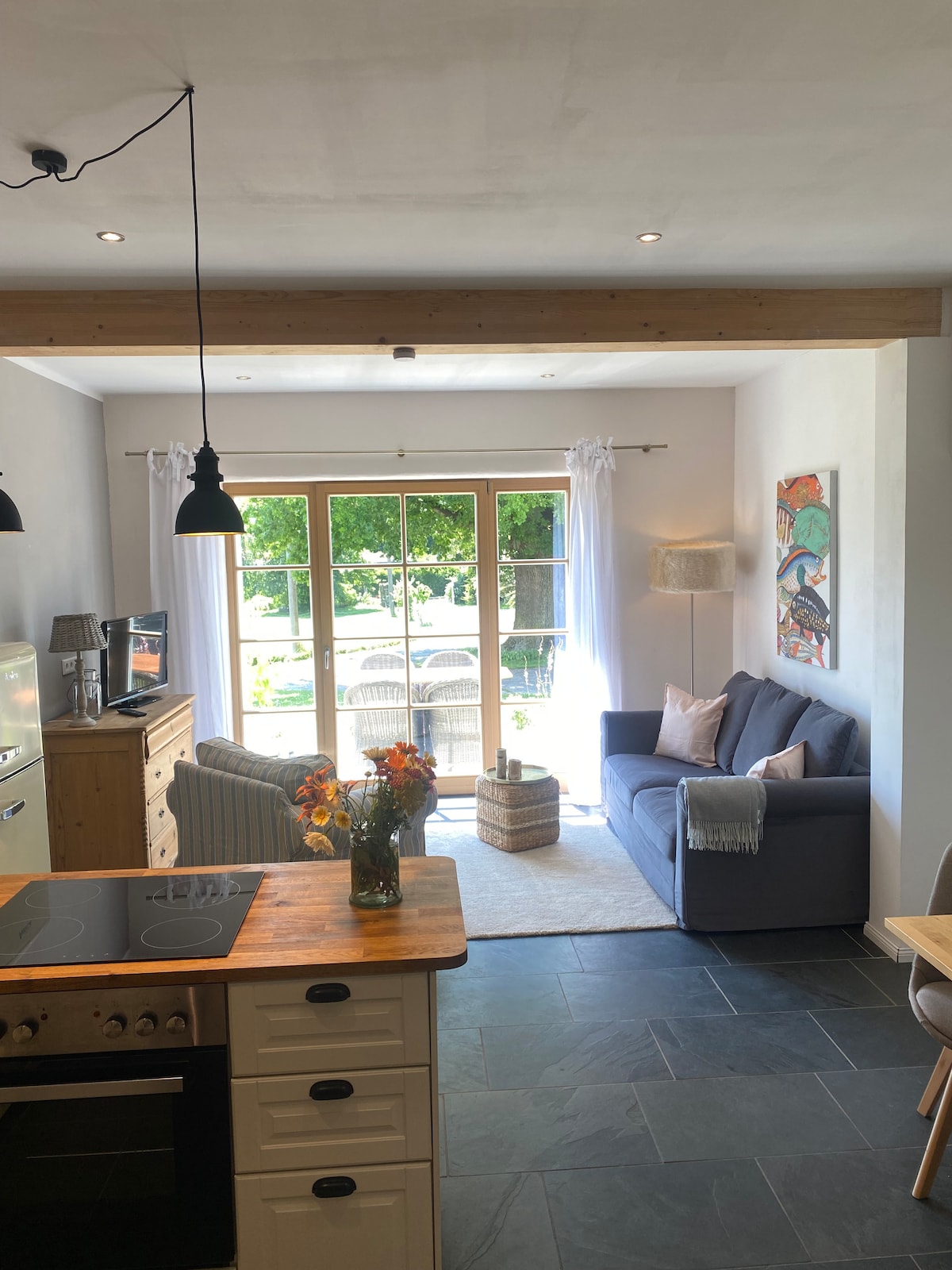Stilvolle und moderne Ferienwohnung in einem wunderschönen Guts- / Bauernhaus nur 2 km vom Bodden entfernt Wir haben ein altes Guts- / Bauernhaus zu neuem Leben erweckt. Durch eine Vollsanierung entstanden in den letzten beiden Jahren stilvolle Ferienunterkünfte, die durch moderne Wohnelemente die alten Baubestandteile beeindruckend hervorheben. Naturmaterialien wie Lehmputz, Natursteinfliesen und Eicheparkett unterstreichen das Ambiente unserer Ferienwohnungen.